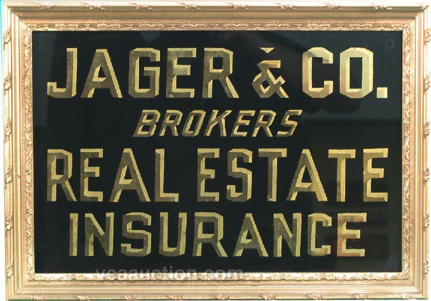 Jager & Co. Brokers Reverse On Glass Sign - Real Estate, Insurance in frame - 20" x 14"