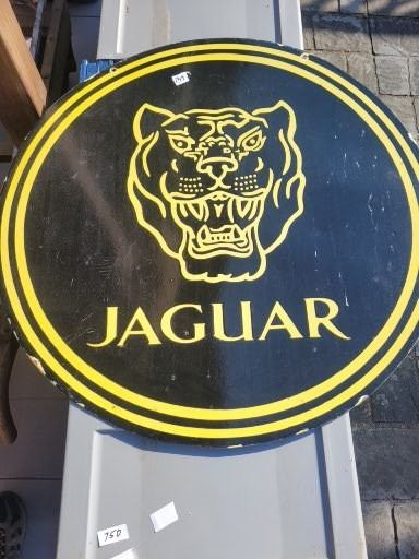 Jaguar porcelain sign 30" Diameter double sided Good graphics re-production