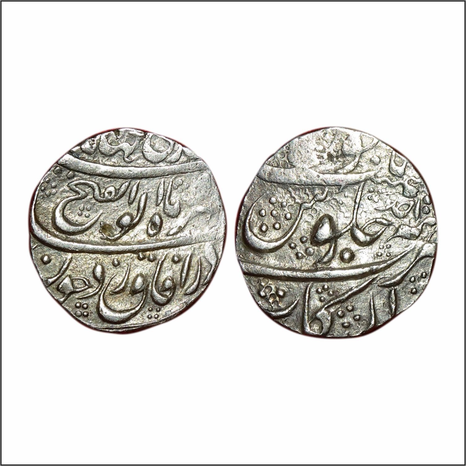 Jahandar Shah, Silver Rupee, Arkat Mint, Abu ‘l Fath type, Ahd RY, complete Mint name on rev bottom.