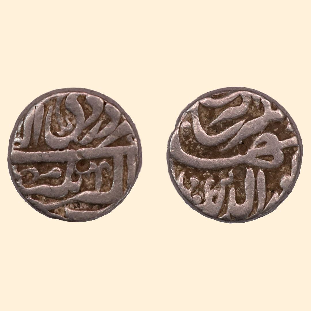 Jahangir (AH 1014-1037 / 1605-1627 AD), Silver Rupee, 11.20gms, Akbarnagar Mint, Ilahi type, Month Farwardin, after mint name “ MOHOR “ word is visioble date off flan. Extremely rare, unusal., Very fine+