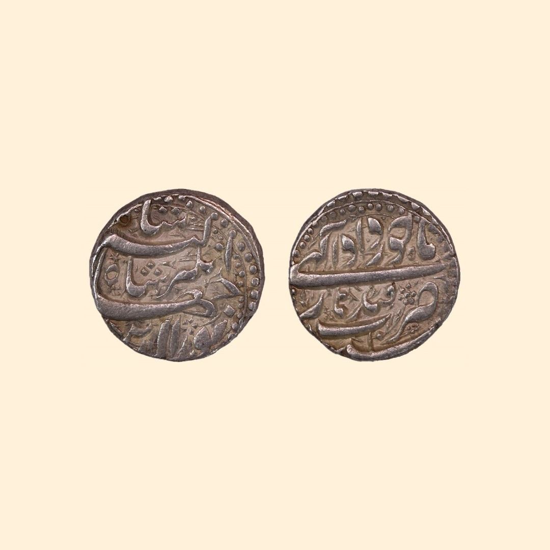 Jahangir (AH 1014-1037 / 1605-1627 AD), Silver Rupee, 11.40gms, Qandahar Mint, Ilahi type, Month Khurdad, RY 10, dotted border on both sides. (KM # 145.13).