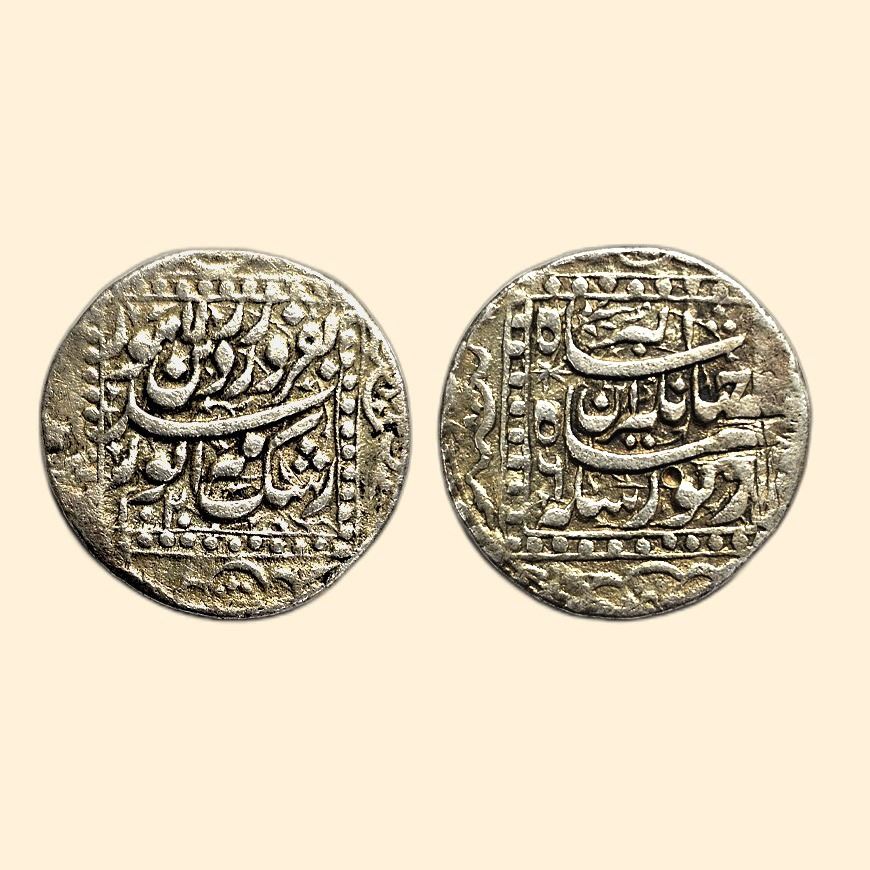 Jahangir (AH 1014-1037 / 1605-1627 AD), Silver Heavy Rupee, 14.24gms (25% Overweight), known as Sawai Rupee, Lahore Mint, AH 1020, RY 6, poetic couplet read as on OBV: Ba-Farwardin Zar -i-Lahore shud Rashk Mah-Anwar, REV: Ze Noor-i-Sikka-i-Jahangir Shah ibn-i-Shah Akbar, translation In Farwardin, the gold or money of Lahore became an object like the resplendent shining moon from the light of the coin of king Jahangir, the son of king Akbar. Unlisted in KM. (Manik Jain # 21, Couplets of Mughal coins). Extra fine, Extremely rare.