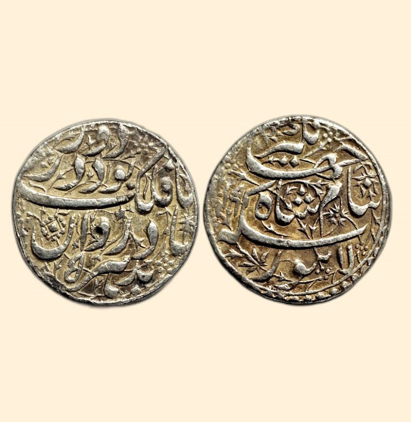 Jahangir (AH 1014-1037 / 1605-1627 AD), Silver Heavy Rupee, 14.20g (25% over weight) known as ’ Sawai’ Rupee, Lahore Mint, AH 1018, RY 5, Ta-Falak couplet which reads as Ta Falak bud dar bad rawan bad har; Sikka Lahore banam Shah Jahangir, these coins were struck only during the fourth, fifth and sixth regnal years of the emperor. (KM # 158.5). Extra fine, Very rare.