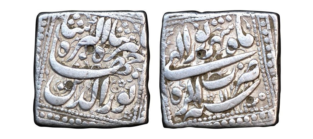 Jahangir (AH 1014-1037, 1605-1628 AD), Silver Square Rupee, 11.32 gms, Agra Mint, Ilahi Month Shahrewar, AH 1025, RY 11, KM # 147.2, very fine, very rare.