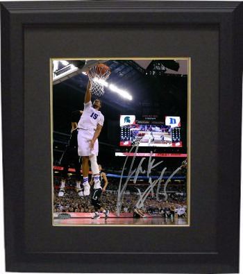 At Duke, Jahlil Okafor earned the USBWA National Freshman of the Year and ACC Player of the Year. He was also a unanimous 2015 NCAA Men's Basketball All-American first-team selection. In the week following Duke's victory in the championship game of the 2015 NCAA Men's Division I Basketball Tournament, Okafor announced he would enter the 2015 NBA draft. He was selected with the 3rd overall pick by the Philadelphia 76ers. Jahlil Okafor has hand signed Duke Blue Devils 16x20 Photo with #15 inscription. Schwartz Sports Hologram and Certificate of Authenticity from Athlon Sports. Custom Black Mat and Premium Black Color Frame.