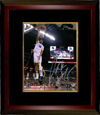 At Duke, Jahlil Okafor earned the USBWA National Freshman of the Year and ACC Player of the Year. He was also a unanimous 2015 NCAA Men's Basketball All-American first-team selection. In the week following Duke's victory in the championship game of the 2015 NCAA Men's Division I Basketball Tournament, Okafor announced he would enter the 2015 NBA draft. He was selected with the 3rd overall pick by the Philadelphia 76ers. Jahlil Okafor has hand signed Duke Blue Devils 8x10 Photo with #15 inscription. Schwartz Sports Hologram and Certificate of Authenticity from Athlon Sports. Custom Black Mat and Premium Mahogany Color Frame.
