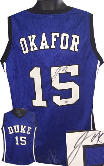 At Duke, Jahlil Okafor earned the USBWA National Freshman of the Year and ACC Player of the Year. He was also a unanimous 2015 NCAA Men's Basketball All-American first-team selection. In the week following Duke's victory in the championship game of the 2015 NCAA Men's Division I Basketball Tournament, Okafor announced he would enter the 2015 NBA draft. He was selected with the 3rd overall pick by the Philadelphia 76ers. Jahlil Okafor Duke Blue Devils has hand signed this Blue custom-prostyle jersey with twill stitched nameplate and numbers. Schwartz Sports Hologram and Certificate of Authenticity from Athlon Sports.