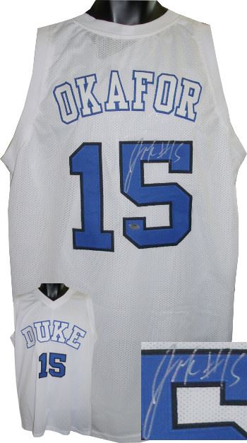 At Duke, Jahlil Okafor earned the USBWA National Freshman of the Year and ACC Player of the Year. He was also a unanimous 2015 NCAA Men's Basketball All-American first-team selection. In the week following Duke's victory in the championship game of the 2015 NCAA Men's Division I Basketball Tournament, Okafor announced he would enter the 2015 NBA draft. He was selected with the 3rd overall pick by the Philadelphia 76ers. Jahlil Okafor Duke Blue Devils has hand signed this White Final Four custom-prostyle jersey with twill stitched nameplate and numbers with #15 inscription. Schwartz Sports Hologram and Certificate of Authenticity from Athlon Sports.
