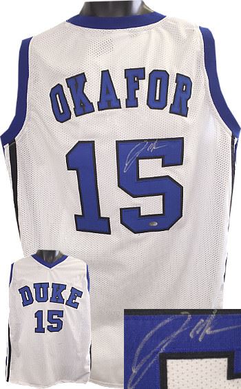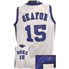 At Duke, Jahlil Okafor earned the USBWA National Freshman of the Year and ACC Player of the Year. He was also a unanimous 2015 NCAA Men's Basketball All-American first-team selection. In the week following Duke's victory in the championship game of the 2015 NCAA Men's Division I Basketball Tournament, Okafor announced he would enter the 2015 NBA draft. He was selected with the 3rd overall pick by the Philadelphia 76ers. Jahlil Okafor Duke Blue Devils has hand signed this White custom-prostyle jersey with twill stitched Blue nameplate and Blue numbers. Schwartz Sports Hologram and Certificate of Authenticity from Athlon Sports.