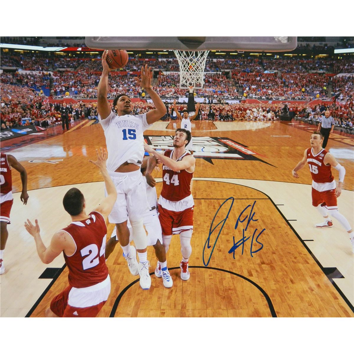 Jahlil Okafor signed Duke Blue Devils 2015 Final Four championship game lay up 16x20 photo. Item comes with a Schwartz Sports Memorabilia tamper-proof numbered hologram and Certificate of Authenticity which can be verified online.