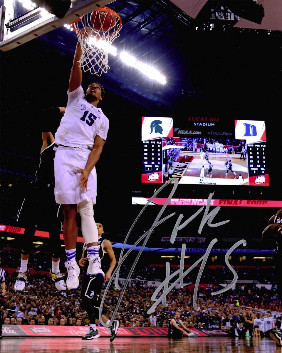 Jahlil Okafor signed Duke Blue Devils 2015 Final Four slam dunk vs Michigan State 8x10 photo. Item comes with a Schwartz Sports Memorabilia tamper-proof numbered hologram and Certificate of Authenticity which can be verified online.