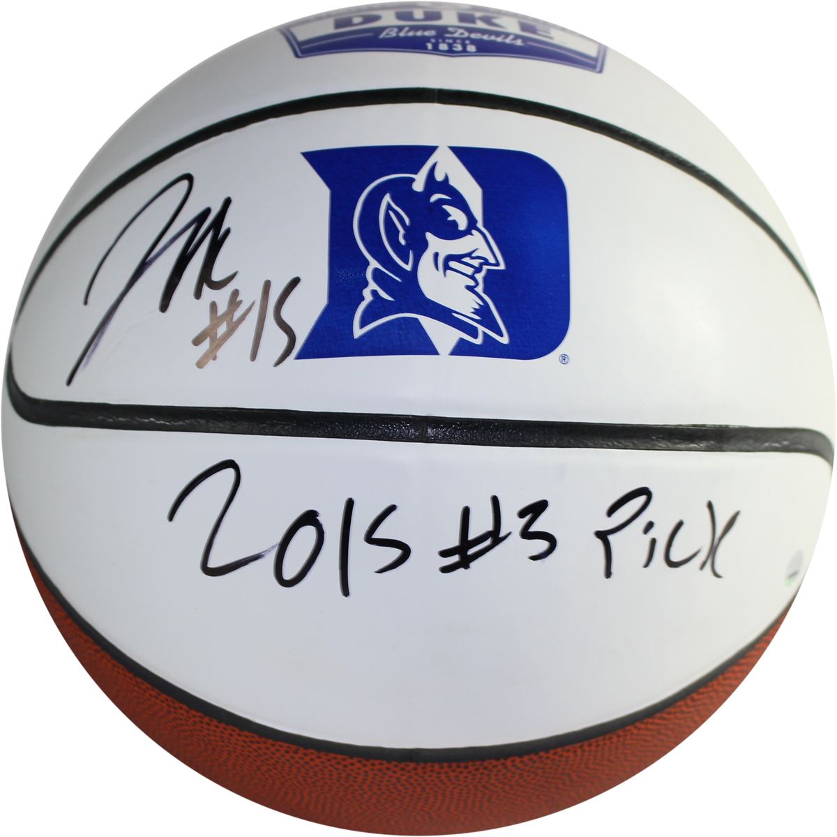 Jahlil Okafor Signed Duke University White Panel Full Size Basketball w/ "2015 #3 Overall Pick" Insc