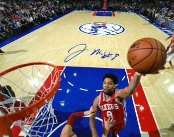 At Duke, Jahlil Okafor earned the USBWA National Freshman of the Year and ACC Player of the Year. He was also a unanimous 2015 NCAA Men's Basketball All-American first-team selection. In the week following Duke's victory in the championship game of the 2015 NCAA Men's Division I Basketball Tournament, Okafor announced he would enter the 2015 NBA draft. He was selected with the 3rd overall pick by the Philadelphia 76ers. Jahlil Okafor has hand signed this Philadelphia 76ers 16x20 Photo with #8 inscription. Schwartz Sports Hologram and Certificate of Authenticity from Athlon Sports.