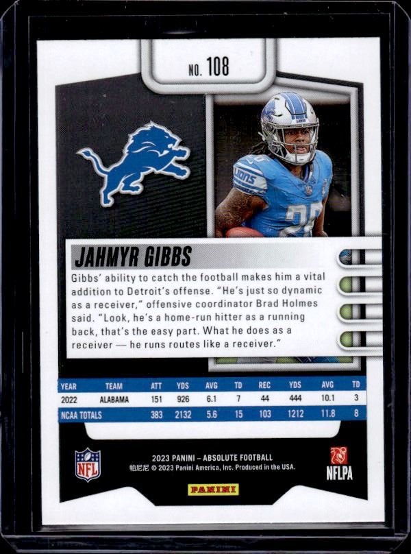 Jahmyr Gibbs Rookie Card 2023 Panini Absolute #108