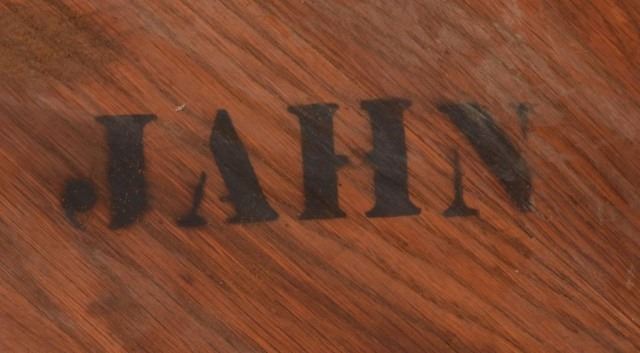 Stamped "JAHN" on underside. Jahn was a famous furniture maker out of New Braunfels Texas