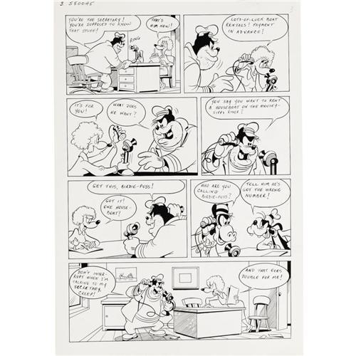 <B>Jaime Diaz Studio - Ze Carioca #1611, Complete 10-page Story "Houseboat" Original Art (Disney, 1982).</B></I> Originally published in the Brazilian magazine, <B>Ze Carioca</B></I> #1611, this ten-page tale, featuring Goofy, was written by Ed Nofziger, with art by the Jaime Diaz Studio. Each page has an image area of 11.5" x 16.5". In Very Good condition.<BR><BR><b>Shipping:</b> Large Flat (<a target="_blank" href="http://www.heritageauctions.com/common/shipping.php">view shipping information</a>)