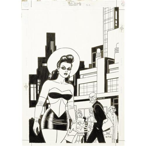 Spider Jerusalem takes in the sights while strolling through the City, in this jazzy cover illustration by Jaime Hernandez. The image area measures 10.5" x 15.5". In Excellent condition. <BR><BR><BR><b>Shipping:</b> Small Flat (<a target="_blank" href="http://www.heritageauctions.com/common/shipping.php">view shipping information</a>)