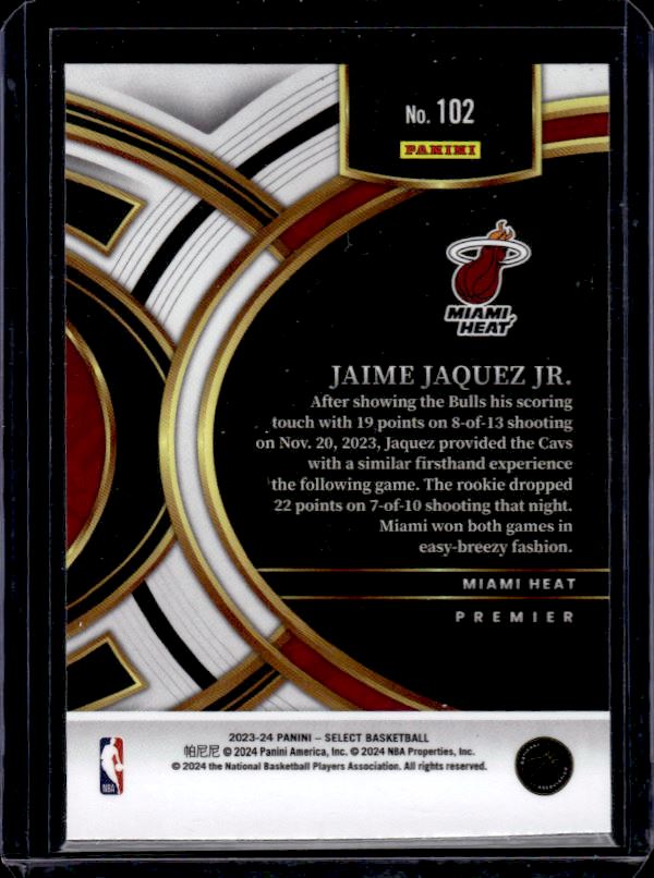 Jaime Jaquez Jr. ROOKIE CARD 2023 - 2024 Panini Select Premier Level #102.