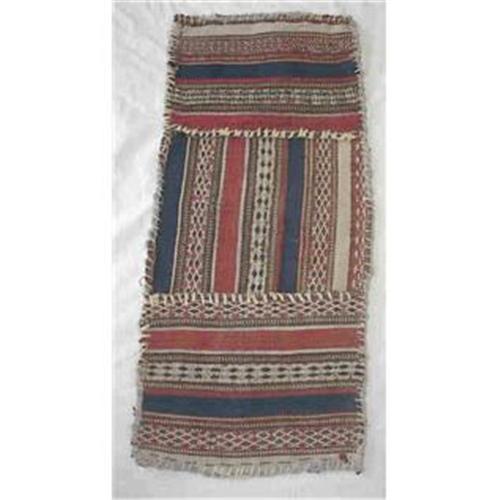This is a semi antique jajim khorjin from Qashqaii tribe of Persia...cc late 1970's in very good condition, washed, clean, 100% intact.....khorjin woven as one piece as a stripe of jajim on a narrow loom, folded to form the bags....Used for inside the tent or for traders....both sides shown, very fine jajim woven.....size is total 22" x 9", each bag 7" x 9"...SHI to Canada $15, to USA $15, International $20 not inc insurance...Combined shipping available worldwide