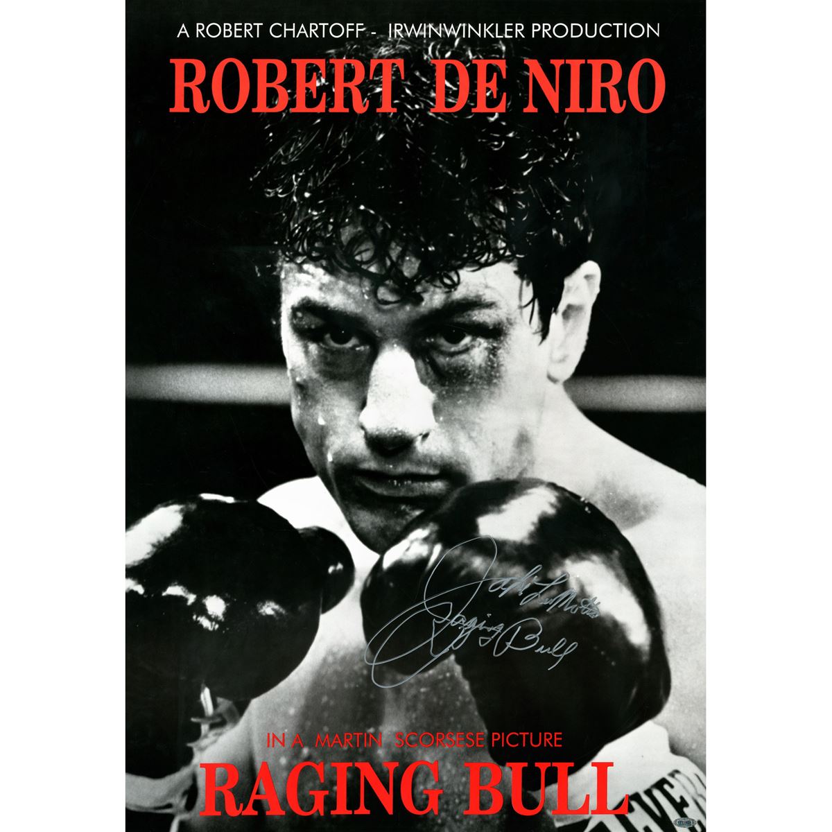 Jake LaMotta Signed 24x33 Movie Poster w/ "Raging Bull" insc ( Signed in Silver)