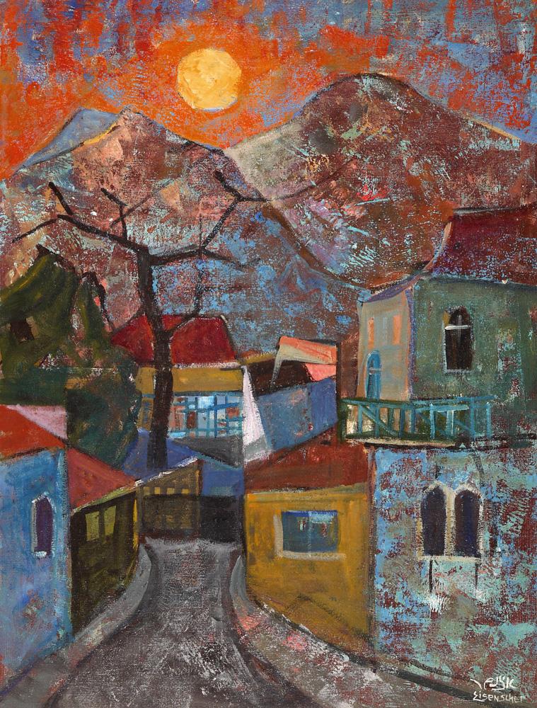 Jakob Eisenscher, Israeli Art, 1896 - 1980, Safed, Oil on canvas, 61x46cm, Signed., , , , ,
