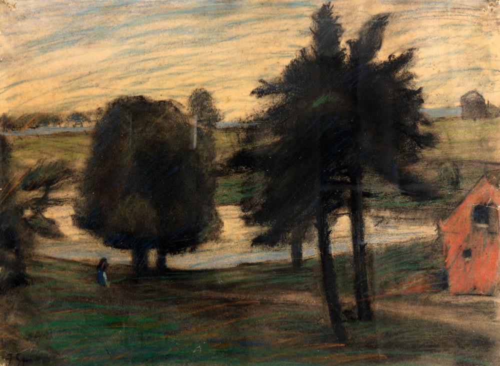 Jakob Steinhardt, German and Israeli Art, 1887 - 1968, Figure in a Landscape, Pastel, 29.5x40.5cm, Signed., , , The grandson of the artist's sister. The painting was given by the artist as a present to his sister, Selma Steinhardt Hirsh., ,