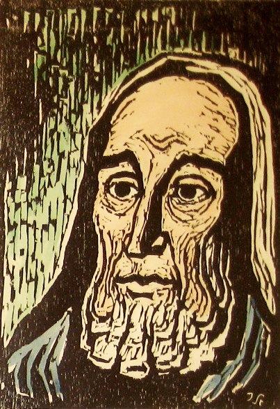 Jakob Steinhardt, Israeli Art, 1887 - 1968, Rabbi, 1962, Woodcut hand painted with watercolor, 36x26cm, Signed and dated., , , , ,