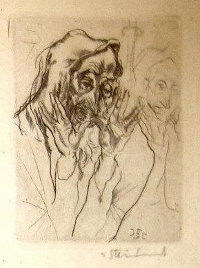 Jakob Steinhardt, Israeli Art, 1887 - 1968, Priestly Blessing, Etching, 11x9cm, Signed., , , , ,