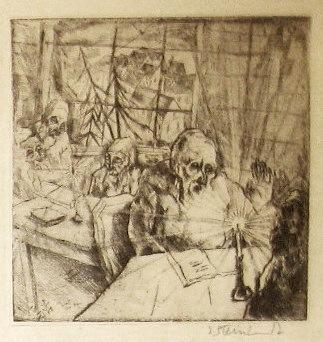 Jakob Steinhardt, Israeli Art, 1887 - 1968, Havdala, Etching, 10.5x10.5cm, Signed., , , , From a book.,