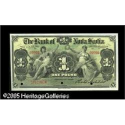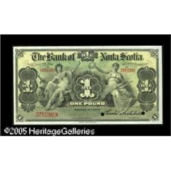 <B>Jamaica - Bank of Nova Scotia Specimen Notes.</B></I><BR>Kingston, Jamaica- Bank of Nova Scotia 1 $ Jan. 2, 1919 Charlton 550-38-02-04S CU, two PCs<BR>Kingston, Jamaica- Bank of Nova Scotia 1 $ 1919 Charlton 550-38-02-04S CU, three PCs<BR>Kingston, Jamaica- Bank of Nova Scotia 5 $ Jan. 2, 1920 Charlton 550-38-02-08S Choice CU, two PCs.<BR>These stunning specimens were printed by the ABNCo, with minute handling observed on the 1 $ issues. A 1899 act of parliament enabled Canadian banks to issue notes in British colonies, and the Bank of Nova Scotia was the first bank to take advantage of this.<BR> 3 notes Lot:15532