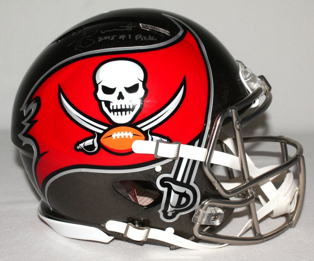 Riddell full-size authentic proline speed helmet. Hand-signed and inscribed in silver paint pen by Jameis Winston (Buccaneers). Helmet is limited edition and hand-numbered #13/13.