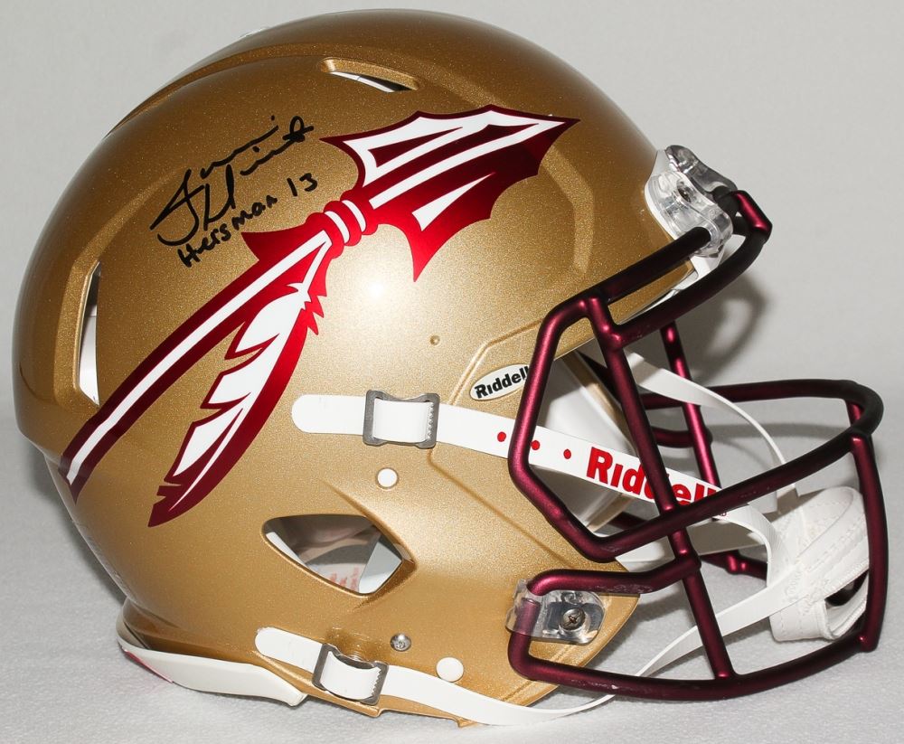 Riddell full-size authentic proline speed helmet. Hand-signed and inscribed in black felt-tip pen by Jameis Winston (Buccaneers). The helmet is limited edition and hand-numbered out of /13.