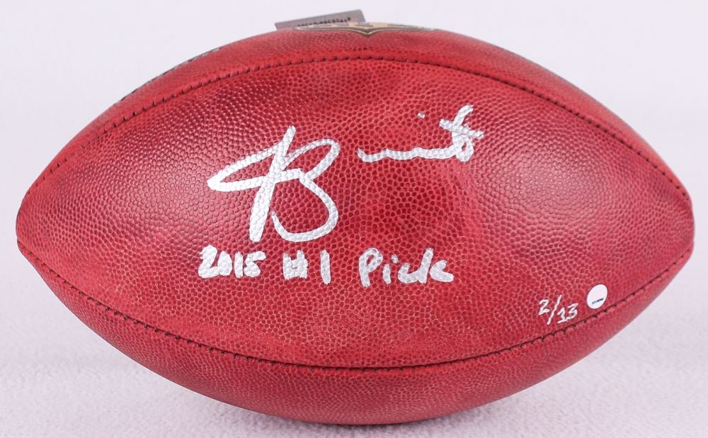 Wilson NFL official game football. Hand-signed in silver paint-pen by Jameis Winston (Buccaneers). Football is limited edition and has been hand-numbered out of /13.