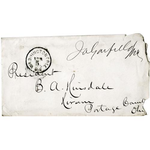 <B>James A Garfield Two Covers Signed as Congressman,</B></I> each franked "<I>J. A. Garfield MC</B></I>" in the upper right corner and written to B(urke) A. Hinsdale, President of Hiram College in Portage County, Ohio. Notated on the back are the dates the envelopes were received - 1866 and 1873. James A. Garfield was in the Ohio Volunteer Infantry when he was elected to Congress for the first time in 1862. He chose to stay in the Army and was commissioned a major general on September 19, 1863 following his gallantry at Chickamauga. He resigned his commission a few weeks later, finally taking his seat in Congress, a position he would hold for nine terms until his election as president in 1880. Hinsdale was a longtime friend and correspondent of Garfield's, and was the author of an often-referenced two-volume book, <B>Works.</B></I> Much of their correspondence was published in the <B>Garfield-Hinsdale Letters,</B></I> edited by Mary L. Hinsdale in 1949. Condition of both covers is fine, the 1873 cover is ragged at the right edge, not affecting the signature, each 5.75" x 3.25" in size, original letters not present.