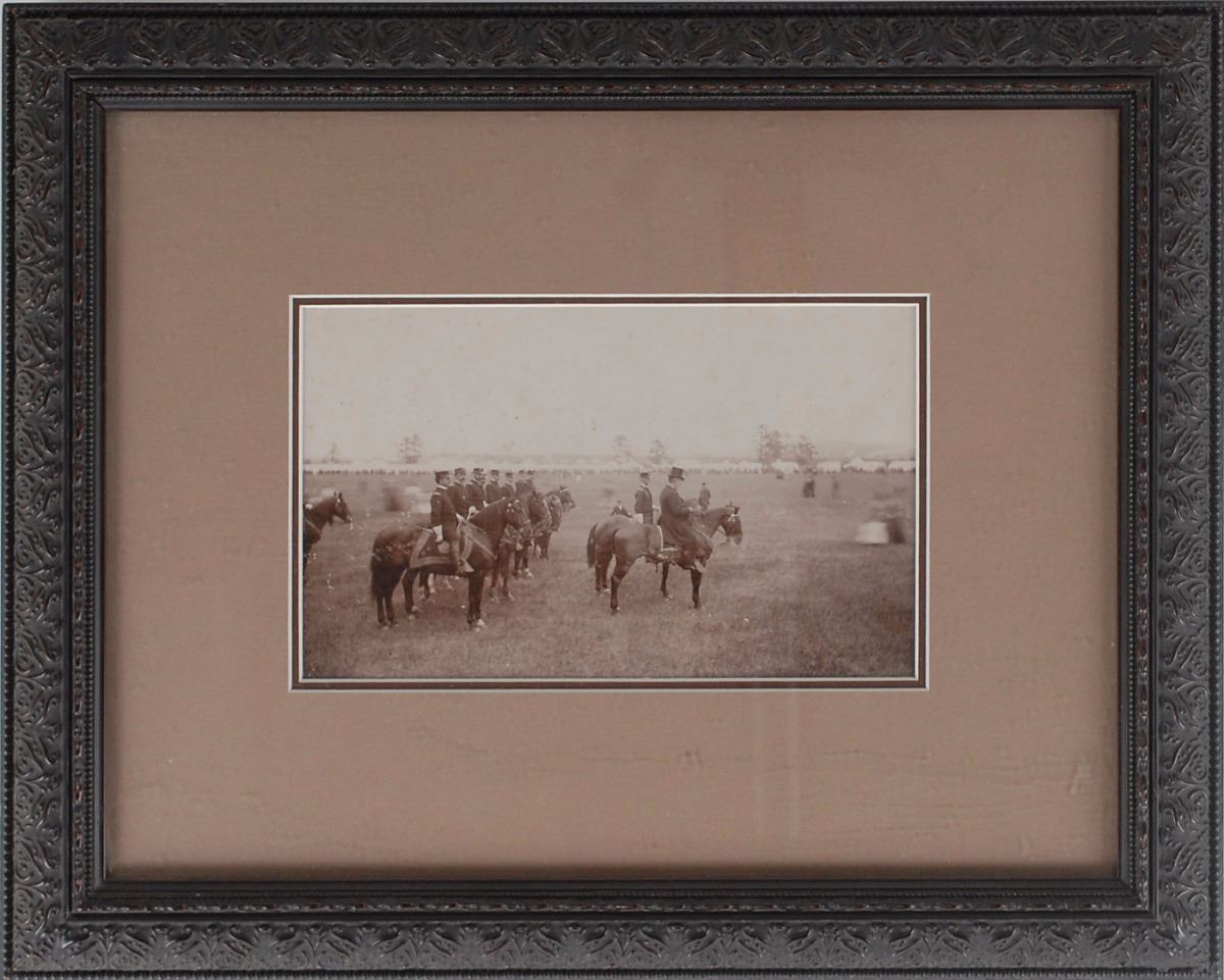 Interesting unsigned original 7.5 x 4.5 photo of Garfield on horseback with an Army detail, double-matted and framed to an overall size of 15 x 12. In fine condition.