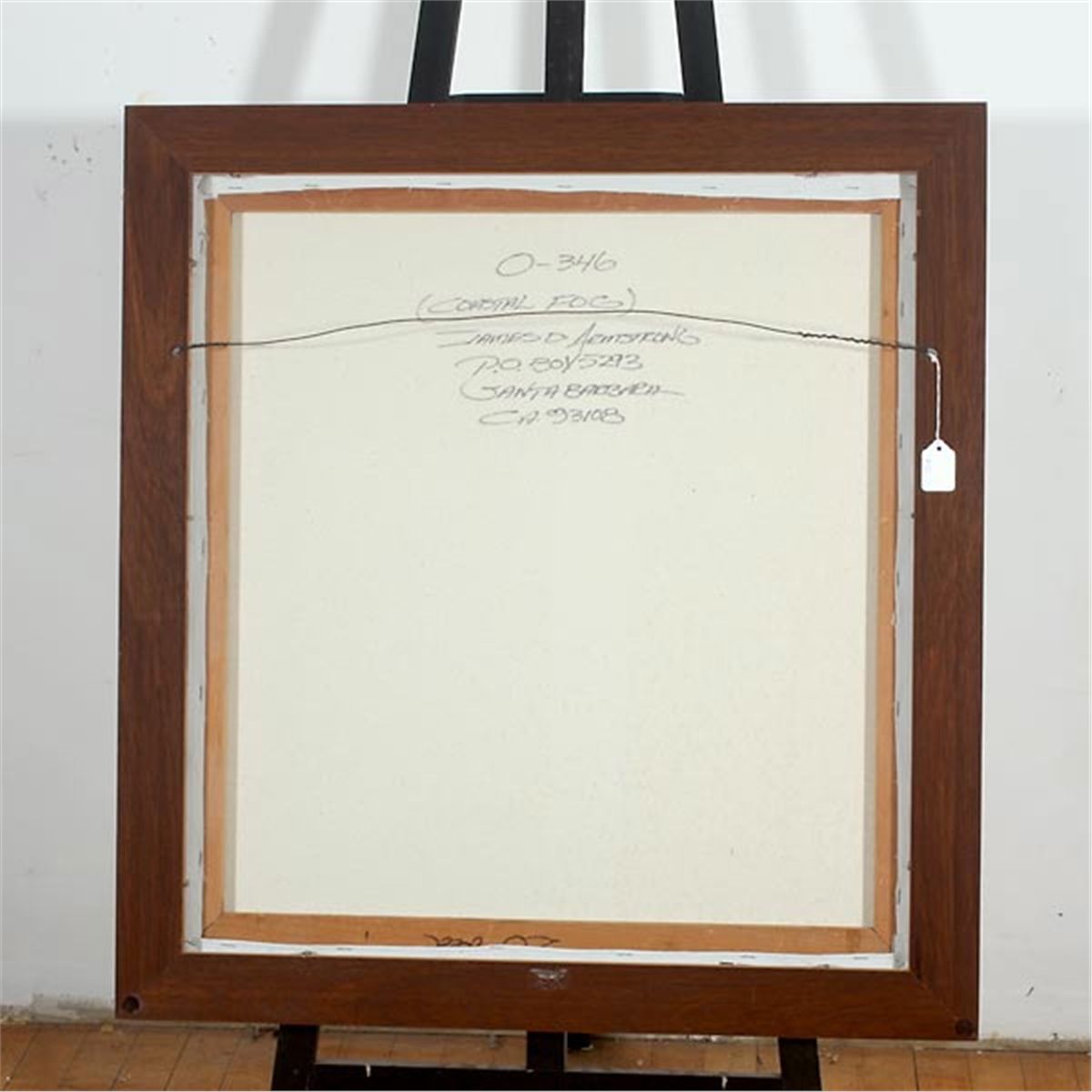 JAMES ARMSTRONG (American b.1937) Coastal Fog Oil abstract on canvas 25 x 28 inches/ 63.5 x 71.1 centimeters Verso: Signed and titled "(Coastal Fog) James Armstrong" Frame: 32 x 29.50 inches/ 81.3 x 74.9 centimeters In good condition: 2 small bumps to canvas. Framed