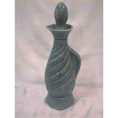 Glass Decanter with stopper is marked Creation of James B. Beam Distilling Company #D-334-145-66 Genuine Regal China C. Miller 1966. This decanter is a blue teal color with swirl design and measures 13 inches high and 4 inches wide and is fine condition with no chips or cracks. Year 1966.