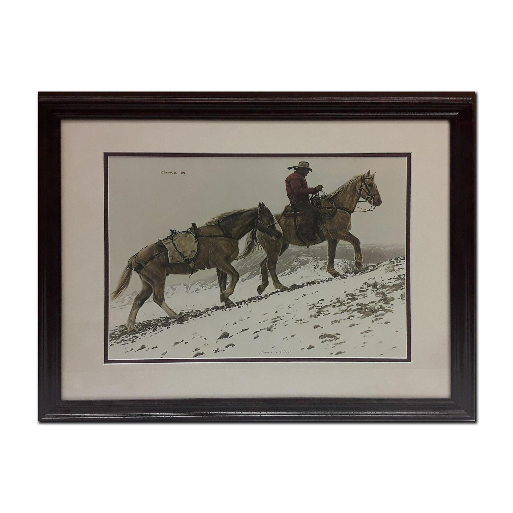 James Bama's "Riding the Rim" Limited edition print signed and numbered 796/1258. This has been custom framed and double matted using acid free matting. Image- 15" x 19". Frame- 24" x 28".