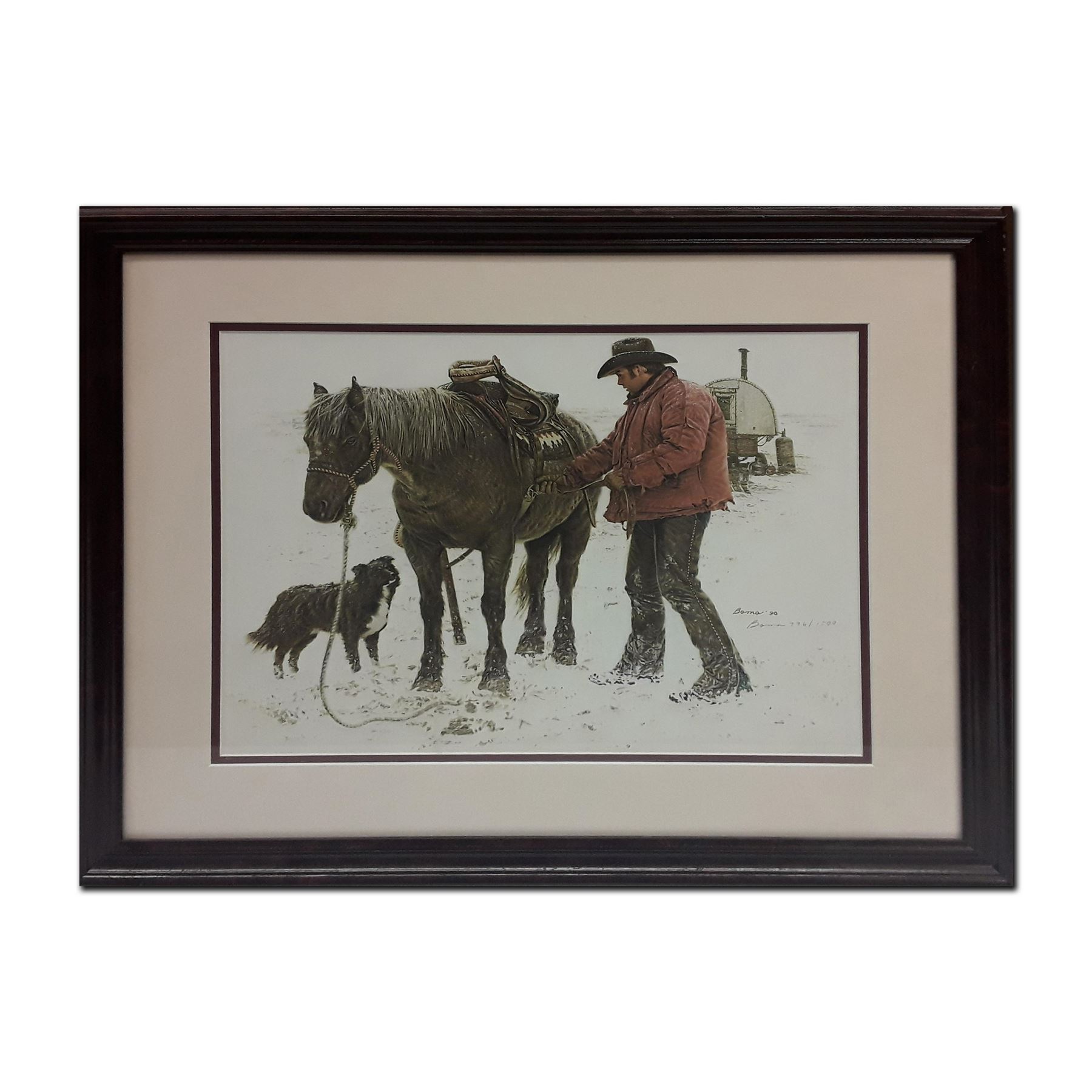 James Bama's "Young Sheepherder" limited edition print signed and numbered 796/1500. This has been custom framed and double matted using acid free matting. Included with certificate of authenticity. Image- 14 3/4" x 19". Frame- 24" x 28".
