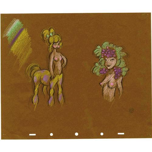 <B>James Bodrero (attributed) - "Fantasia" Pastoral Sequence Animation Concept Drawing Original Art (Walt Disney, 1940).</B></I> Pastel model sheet of two sexy Centaurettes, on a 12 field, brown, five-hole animation sheet measuring 12" x 10". Has a small WD stamp in lower right corner. Very nice! In Excellent condition.<BR><BR><b>Shipping:</b> Flat Material, Small (<a target="_blank" href="http://www.heritageauctions.com/common/shipping.php">view shipping information</a>)