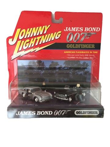 James Bond 007 Goldfinger American Flashbacks in Time to the 60's with a scene that includes James Bond's '64 Aston Martin, 1955 Chrysler C-300, a scene from the James Bond movie "Goldfinger" and in scale figures. Playing Mantis, 2001.