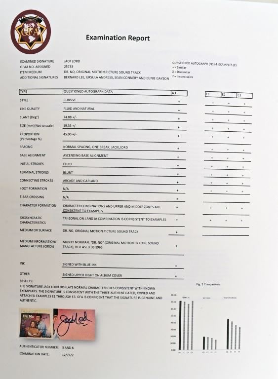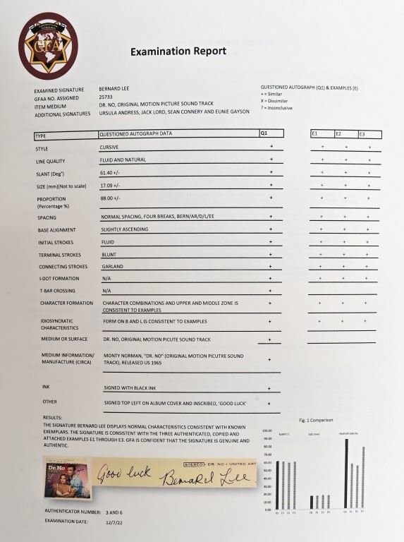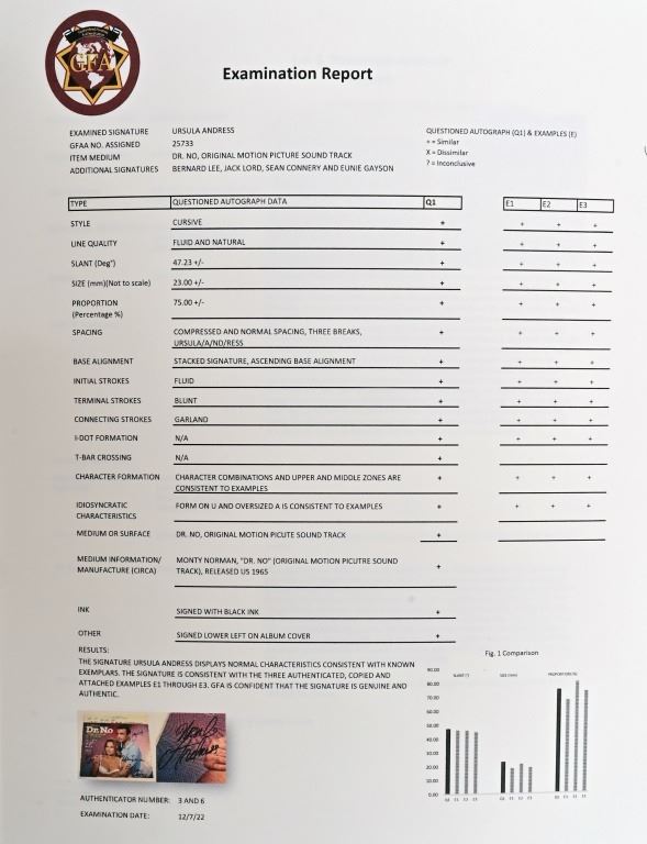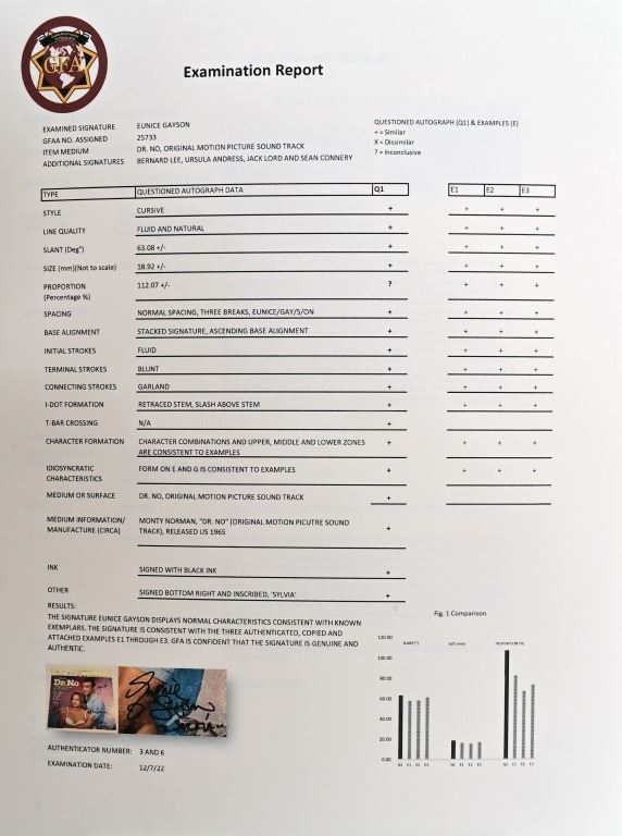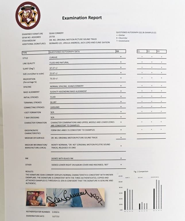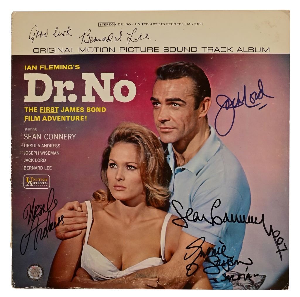 James Bond Dr. No cast signed sound track autographed by Sean Connery, Bernard Lee, Jack Lord, Ursula Andress and Eunice Gayson. 12x12 inches. GFA Authenticated. PSJ423