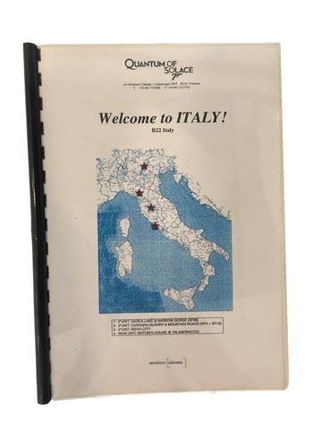 Quantum of Solace (2008) - Production Made Italy Locations Book (EON Productions guide to filming locations including hotels, restaurants, directions and film locations with photos, as shared with cast and crew)