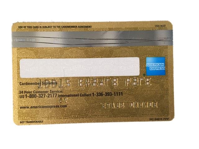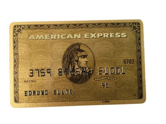 This genuine American Express Card was made for the wallet of Edmund Slate (Neil Jackson), who fought with James Bond to the death in and outside a Haiti hotel suite. The production scored this card through its magnetic strip so it could not leave the set as real currency. The name "Edmund Slate" matches the color-based surnames for other Quantum villains on screen, "Mr. White" and "Dominic Greene".
