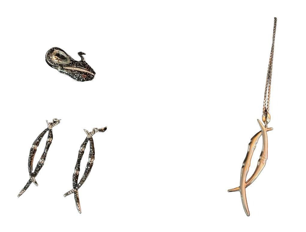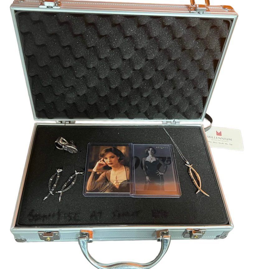 Original jewelry collection worn by the anti-heroine Bond girl "Severine", played by Berenice Marlohe in the Sam Mendes directed spy movie 'Skyfall" (2012). The story centers on Bond investigating an attack on MI6; part of a plot by former agent Raoul Silva to discredit and kill M as revenge for abandoning him.
