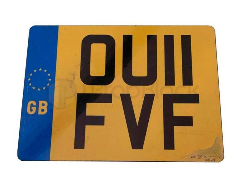 License plate used in the production of the 2012 James Bond spy thriller Skyfall. James Bond's loyalty to M is tested when her past comes back to haunt her. When MI6 comes under attack, 007 must track down and destroy the threat, no matter how personal the cost. This piece was use don the car that was driven by Silvia, actor Javier Bardem and remains in excellent, production used condition.
