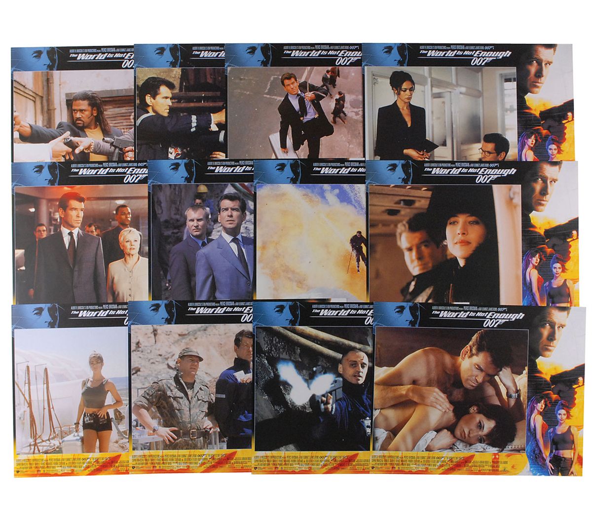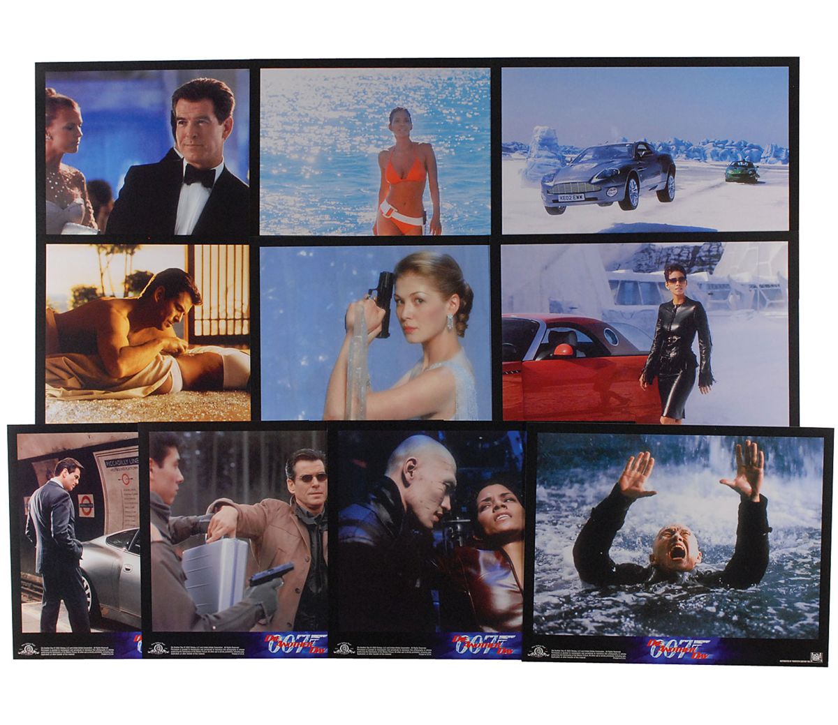 (MGM 1999 and MGM/UA 2002). Complete sets of original lobby cards for the Bond films, The World is Not Enough and Die Another Day. Each card measures 14 x 11 and features key scenes and sets from both films, with images of Pierce Brosnan, Halle Berry, Denise Richards, Sophie Marceau, Judi Dench, and Robert Carlyle. In overall near mint to mint condition.