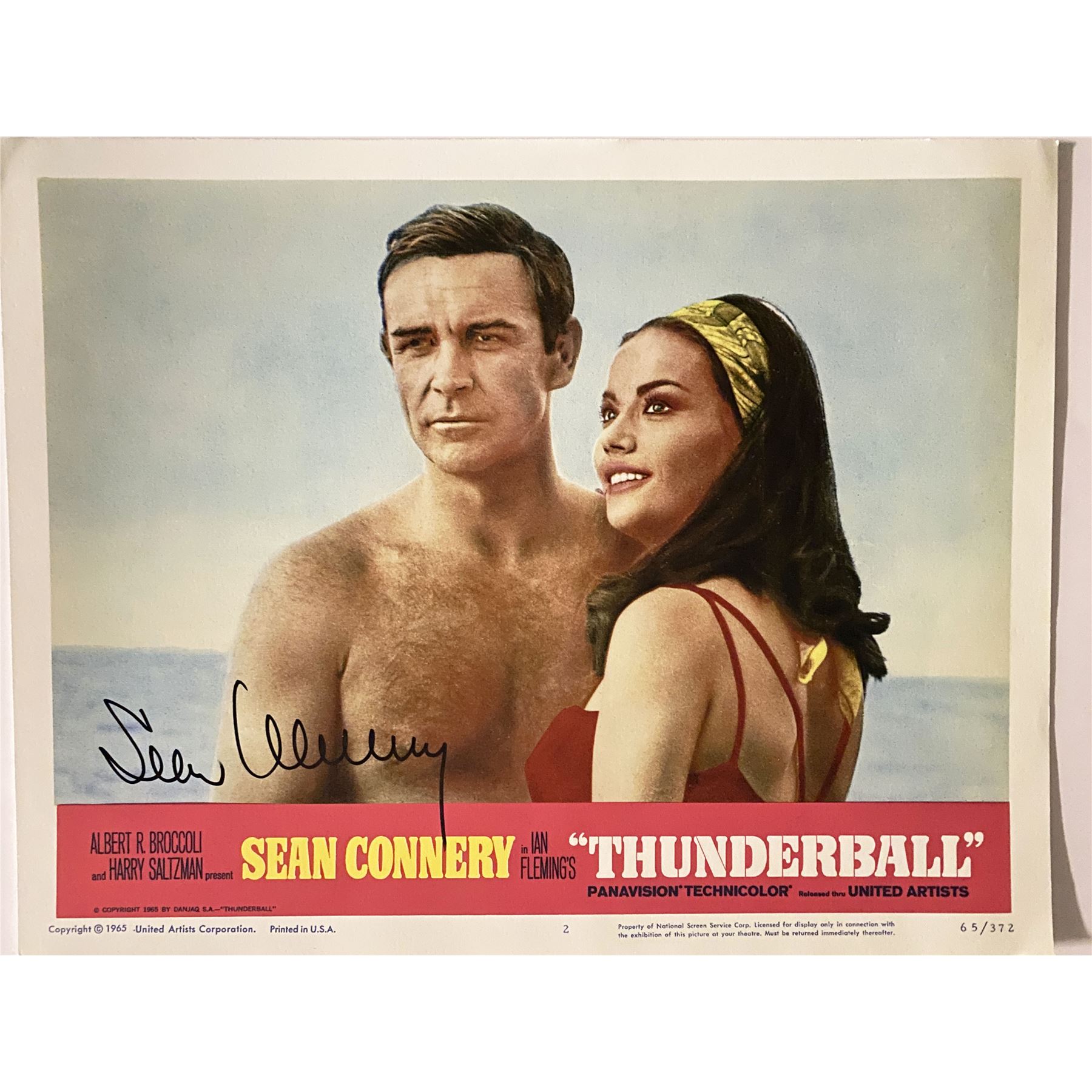James Bond Thunderball signed lobby card. Autographed by Sean Connery. 11x14 inches