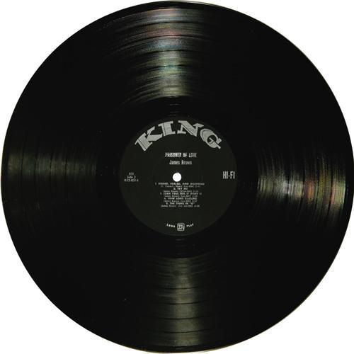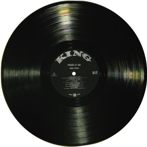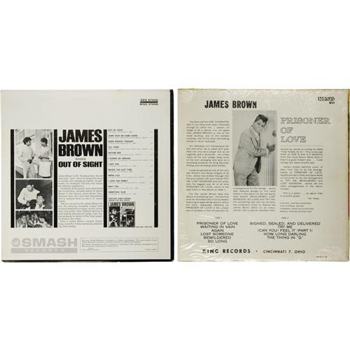 <B>James Brown LP Group of 2 (1963-64).</B></I> Two albums from the Godfather of Soul, including one of an incredible 29 that he released on King in the '60s alone. "Prisoner Of Love" (King 851 Mono, 1963) featured the title cut, at that time Brown's highest-charting hit to date on the Billboard Hot 100. Condition: NM 8 (still in its original shrinkwrap)/ NM 8. Although the second album in this grouping came out a year later, it is much rarer. "Out Of Sight" (Smash 27058 Mono - 1964) was withdrawn shortly after release because of litigation with the King label. Condition: NM 8/ NM 8. <I>From the GRT Collection</B></I>.