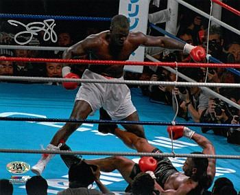 James "Buster" Douglas is a former undisputed world heavyweight boxing champion who scored a stunning upset when he knocked out previously undefeated champion Mike Tyson on February 11, 1990 in Tokyo, Japan. At the time, Tyson was considered to be the best boxer in the world and one of the most feared heavyweight champions in history due to his utter domination of the division. Douglas held the title for eight months and two weeks. James "Buster" Douglas has hand signed this 8x10 Photo knocking out Mike Tyson. MAB Hologram and Certificate of Authenticity from Athlon Sports Collectibles.